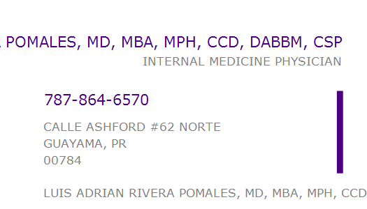 LUIS ADRIAN RIVERA POMALES, MD, MBA, MPH, CCD, DABBM, CSP
