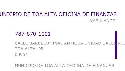 MUNICPIO DE TOA ALTA OFICINA DE FINANZAS