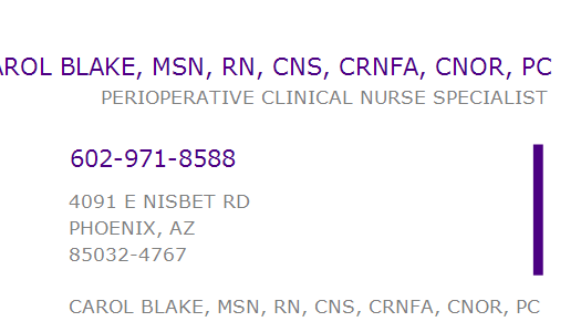 CAROL BLAKE, MSN, RN, CNS, CRNFA, CNOR, PC