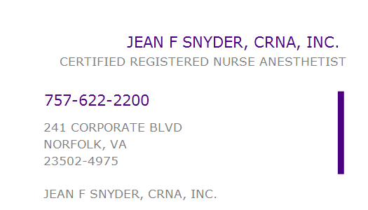 JEAN F SNYDER, CRNA, INC.