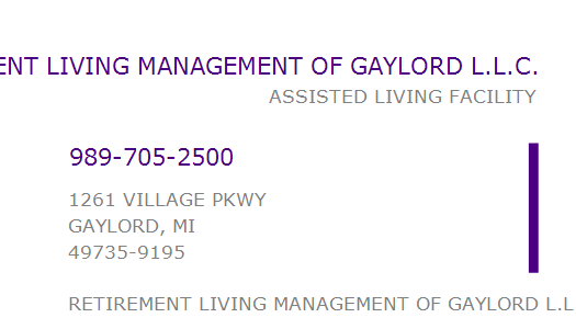RETIREMENT LIVING MANAGEMENT OF GAYLORD L.L.C.