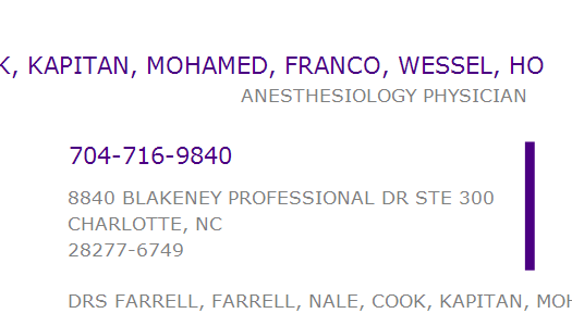 DRS FARRELL, FARRELL, NALE, COOK, KAPITAN, MOHAMED, FRANCO, WESSEL, HO