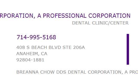 BREANNA CHOW DDS DENTAL CORPORATION, A PROFESSIONAL CORPORATION