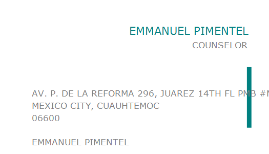 AV. P. DE LA REFORMA 296, JUAREZ 14TH FL PMB #MAILBOX