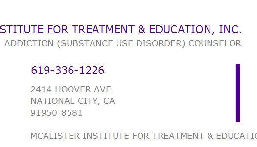 MCALISTER INSTITUTE FOR TREATMENT & EDUCATION, INC.