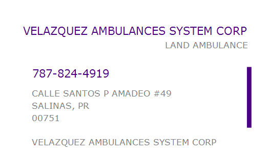 VELAZQUEZ AMBULANCES SYSTEM CORP