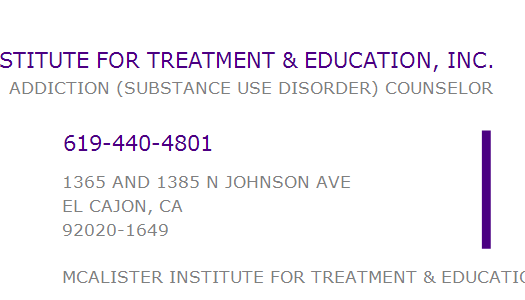 MCALISTER INSTITUTE FOR TREATMENT & EDUCATION, INC.