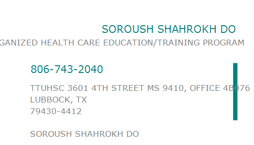 TTUHSC 3601 4TH STREET MS 9410, OFFICE 4B076