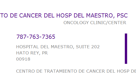 CENTRO DE TRATAMIENTO DE CANCER DEL HOSP DEL MAESTRO, PSC