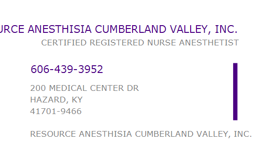 RESOURCE ANESTHISIA CUMBERLAND VALLEY, INC.