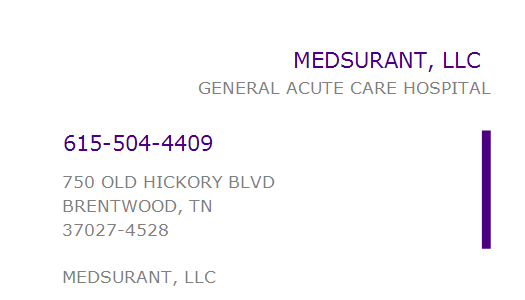 MEDSURANT, LLC 750 OLD HICKORY BLVD BRENTWOOD TN 37027 750 OLD HICKORY BLVD BRENTWOOD TN 37027