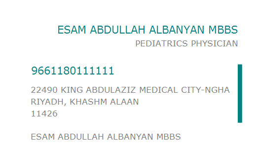 PO BOX 22490 KING ABDULAZIZ MEDICAL CITY-NGHA