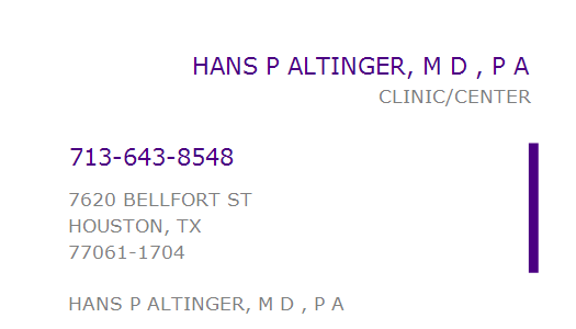 HANS P ALTINGER, M D , P A