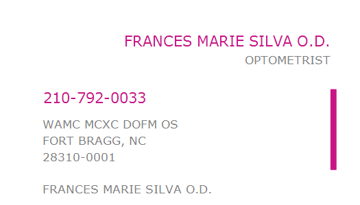 SILVA FRANCES MARIE WAMC MCXC DOFM OS FORT BRAGG NC 28310 WAMC MCXC DOFM OS FORT BRAGG NC 28310