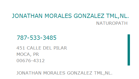 MORALES GONZALEZ JONATHAN 451 CALLE DEL PILAR MOCA PR 00676 451 CALLE DEL PILAR MOCA PR 00676