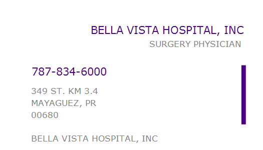 BELLA VISTA HOSPITAL, INC