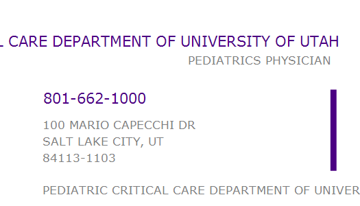 PEDIATRIC CRITICAL CARE DEPARTMENT OF UNIVERSITY OF UTAH