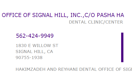 HAKIMZADEH AND REYHANI DENTAL OFFICE OF SIGNAL HILL, INC.,C/O PASHA HA